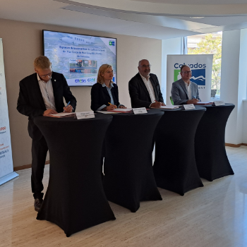 Le Président du Département du Calvados a reçu ses homologues des partenaires financeurs pour la signature officielle de la convention de cofinancement du PCRS.